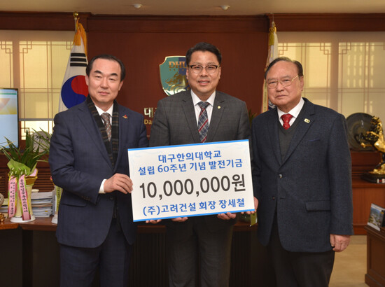 [대학저널 유제민 기자] (주)고려건설 장세철 회장이 대구한의대학교(총장 변창훈)에 글로벌 인재 양성을 위한 발전기금 1000만 원을 기부했다.