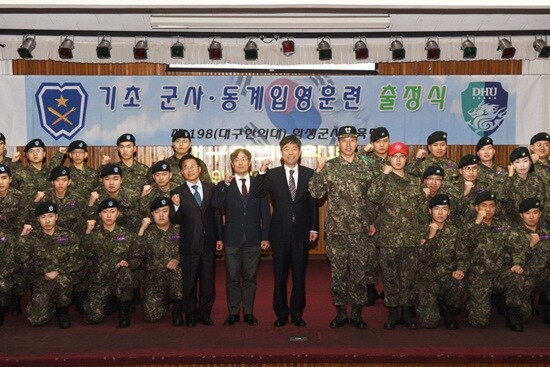 [대학저널 유제민 기자] 대구한의대학교(총장 변창훈) 198학생군사교육단 후보생들이 지난 3일 대구한의대 복지관 강당에서 2018년도 동계 입영훈련 출정식을 가졌다.