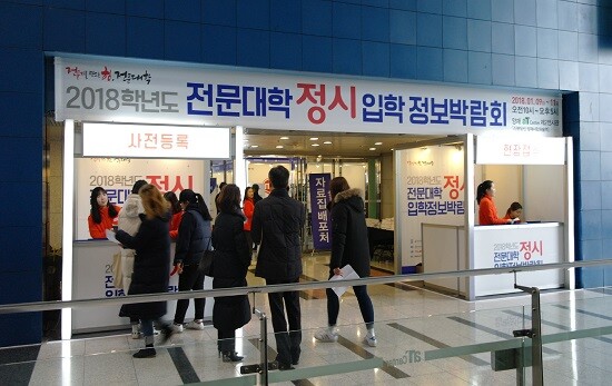 [대학저널 유제민 기자] 전문대학 입시를 희망하는 수험생들을 위한 정보의 장, '2018학년도 전문대학 정시입학정보 박람회'가 서울 양재동 aT센터 제2전시장에서 개최됐다. 이번 박람회는 9일부터 오는 11일까지 열리며 오전 10시부터 5시까지 열린다. 한국전문대학교육협의회(회장 이기우 인천재능대학교 총장)가 이번 행사를 주최한다.