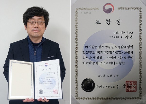 [대학저널 임지연 기자] 경희사이버대학교(총장 조인원) 이상훈 기획협력처 팀장이 부총리 겸 교육부장관 표창을 수상했다.