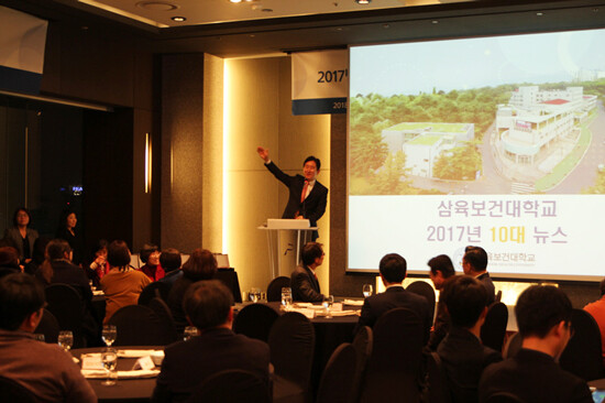 박두한 삼육보건대 총장은 2017년 한 해 동안 일어났던 일들을 10대 뉴스 형태로 나열하며 "신입생 경쟁률 서울권 1위, 정원내 재학생 충원율 서울권 1위, 취업률 수도권 1위를 차지해 ACE대학이 됐다"며 "이렇게 되기까지는 누구 하나가 열심히 해서 한 것이 아니라 우리 모두가 이뤄낸 성과다. 앞으로 대학기본역량진단에서 우수한 성적을 거두기 위해 진심전력하자"고 말했다.