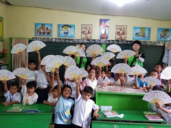 봉사 첫날인 지난 10일 대구대 사범대학 해외봉사단 학생들은 바콜로드 시 외곽 해안가에 위치한 '빌라 에스페란자 초등학교(Villa Esperanza Elementary School)'를 찾았다. 이곳에서 봉사단 학생들은 현지 아이들과 국기그리기, 제기만들기, 부채꾸미기, 그림 편지쓰기 등 체험 위주의 수업을 진행했다.
