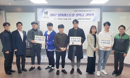 호남대 한국형복합리조트인재양성사업단(이하 KIR사업단)은 지난 12일 호남대 상하관 4층 연회실습실에서 '창의레스토랑' 장학금 전달식을 가졌다. KIR사업단은 창의레스토랑의 매출 중 70%인 총 663만 2367원을 학생들에게 장학금으로 전달했다.