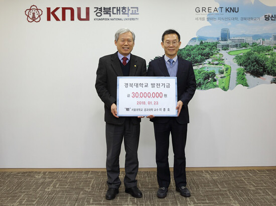 [대학저널 유제민 기자] 경북대학교(총장 김상동) 동문인 이종호 서울대 전기·정보공학부 교수가 23일 김상동 경북대 총장을 방문해 후배들을 위해 써달라며 발전기금 3000만 원을 전달했다.