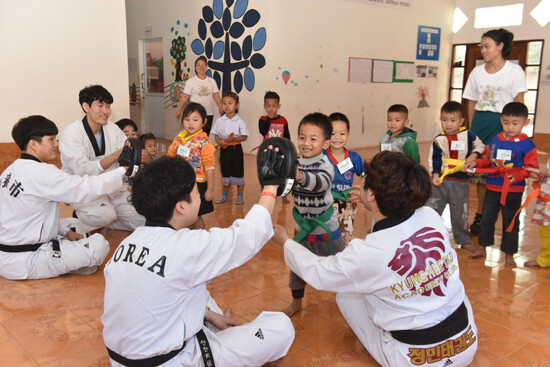 프라임봉사단은 어린이들의 눈높이에 맞는 교육을 위해 라오스어 노래와 율동을 준비해 함께 공연했다. 또 손 위생 관리법과 양치질 교육, 탈 만들기, 손도장나무그리기, 자석낚시, 태권도 발차기 등 다양한 프로그램을 통해 라오스 어린이들과 즐거운 시간을 가졌다.