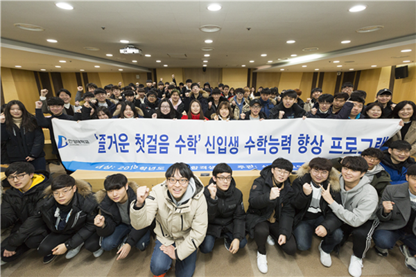 ‘즐거운 첫걸음 수학’은 2018학년도 예비 신입생 기초학력 강화 프로그램 중 하나이다. 신입생들의 기초학습능력을 향상시키고 대학생활 적응에 도움을 주고자 기획된 프로그램이다. 특히 평소 수학에 흥미는 있으나 어렵다고 느끼는 학생들에게 대학에서 다루는 수학의 전 과정을 개념에서부터 쉽게 접근할 수 있도록 구성했다. 선착순 모집 첫날에 100명 모집이 바로 마감될 정도로 예비 대학생들에게 큰 호응을 얻었다.
