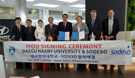 황수정 대구한의대 한방식품조리영양학부 교수가 2010년 독일 하노버 메세박람회 해외 한국음식 홍보 프로젝트에 참가하면서 양 기관은 유대관계를 맺게 됐다. 이후 SODEXO사에서 개최한 한방건강한식 홍보 행사에서 학생들과 함께 참가해 현장실습 인증서 발급과 참가한 학생이 취업하는 성과를 거뒀다.