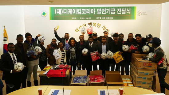 [대학저널 유제민 기자] (재)디케이킴코리아(D.K.KIM Korea Foundation)가 아프리카 지원 캠페인 모금액으로 구입한 기증물품과 재단 기탁금을 대구대학교(총장 홍덕률)에 전달했다. 디케이킴코리아는 해외 저개발국가 지원재단이다.