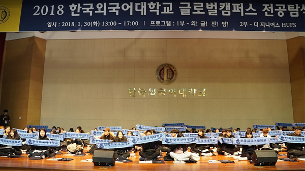[대학저널 신효송 기자] 한국외국어대학교(총장 김인철)가 지난 1월 30일 글로벌 캠퍼스 백년관에서 글로벌캠퍼스 소속 24개 학과와 함께 전국 각 지역 고등학생 400여 명을 초청해 '2018 한국외대 글로벌캠퍼스 전공탐색'을 개최했다.