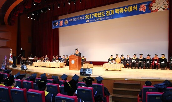 [대학저널 임승미 기자] 군산대학교(총장 나의균)는 20일 군산대 아카데미홀에서 '2017학년도 전기 학위수여식'을 개최했다. 이날 학위수여식에는 졸업생과 교내 주요 보직자, 교내외 귀빈과 하객, 학부모 등 3000여 명이 참석했다.