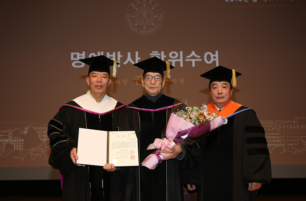 이날 동국대 발전에 큰 기여를 한 권오춘 동문은 명예철학박사 학위를 받았다. 권 동문은 1961년 동국대 영어영문학과를 졸업하고 어려운 경제적 여건을 이겨내며 개인사업을 운영했다. 1980년 초허당 창작지원기금을 출연해 경제적 어려움을 겪고 있는 예술가들을 지원해 ‘가난한 예술가들의 대부’라는 별칭을 얻었다.