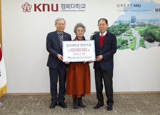 [대학저널 유제민 기자] 경북대학교 동문인 김동규 도서출판 교육과학사 대표가 20일 김상동 경북대 총장을 방문해 후배들을 위해 써달라며 발전기금 1억 원을 전달했다.