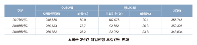 2019학년도 대학입학전형 주요 특징