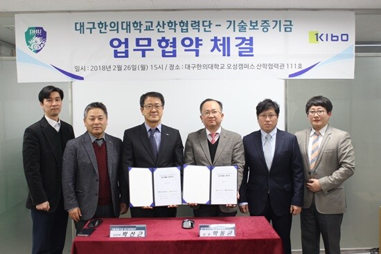협약식은 박동균 대구한의대 산학협력단장과 박선근 기술보증기금 대구지역본부장 등 양 기관 관계자 10여 명이 참석한 가운데 진행됐다.