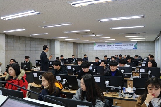 DT 인력양성 프로그램은 울산대에서 2018년 1월 2일부터 2월 9일까지 총 6주의 과정으로 진행됐다. 대상은 울산대 3, 4학년 학생들이다. 1일에 7시간씩, 총 200시간의 과정이 진행됐다. 프로그램에서는 4차 산업혁명의 코어기술인 빅 데이터, 사물인터넷, Enterprise IT 솔루션 등이 교육됐다. 또 전사적 자원관리(ERP), 생산시스템 관리(MES), 공급망 관리(SCM) 등의 IT 기술 교육이 이뤄졌다.