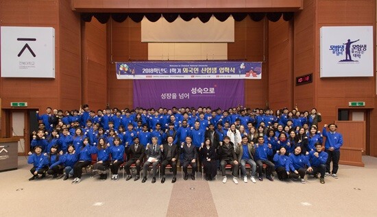 [대학저널 임승미 기자] 전북대학교(총장 이남호)가 2일 전북대 진수당 가인홀에서 2018학년도 1학기 외국인 신입생 입학식을 개최했다. 전북대는 외국인 학생들에게 자긍심을 심어주기 위해 매 학기 별도로 입학식을 마련해 시행하고 있다.