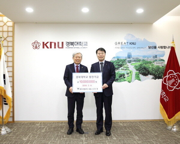[대학저널 임지연 기자] 경북대학교(총장 김상동) 동문인 조만현 동우씨엠(주) 대표가 6일 김상동 경북대 총장을 방문해 발전기금 1000만 원을 전달했다.