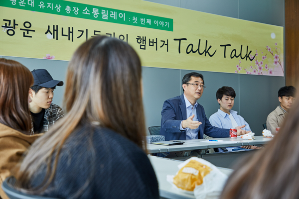 광운대 유지상 총장은 지난 20일 신입생들의 만나 ‘광운대 유지상 총장의 소통릴레이, 그 첫 번째 이야기-광운 새내기들과의 햄버거 Talk Talk’ 시간을 가졌다.