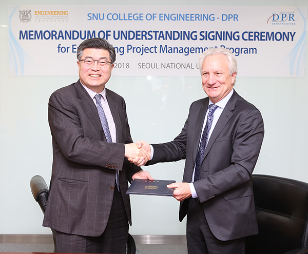 [대학저널 신효송 기자] 서울대학교(총장 성낙인) 공과대학(학장 차국헌)이 지난 22일 미국 DPR건설(회장 에릭 램)과 엔지니어링프로젝트매니지먼트(EPM) 프로그램 지원협력을 위한 업무협약(MOU)을 체결하고 상호 협업을 추진하기로 했다.