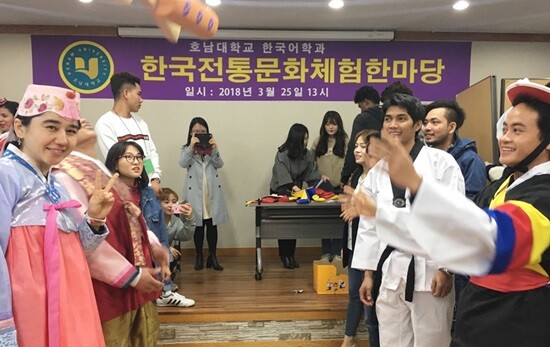 [대학저널 임승미 기자] 호남대학교(총장 서강석) 한국어학과는 지난 25일 광산구 흑석동 광주외국인력지원센터에서 외국인 근로자 60여 명을 대상으로 '외국인 근로자와 함께 하는 한국전통문화체험 한마당'을 진행했다.