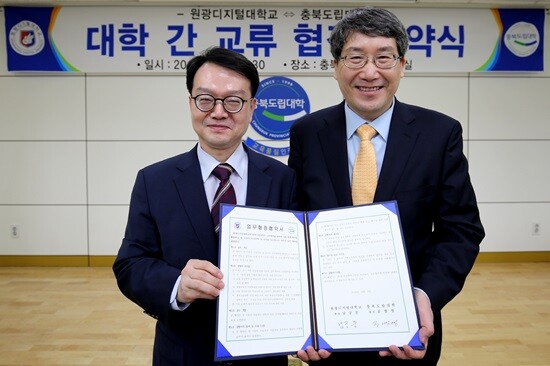 [대학저널 임승미 기자] 원광디지털대학교(총장 남궁문)와 충북도립대학교(총장 공병영)가 온라인 교육환경 개선 및 평생교육 시장 확대를 위해 협력한다.