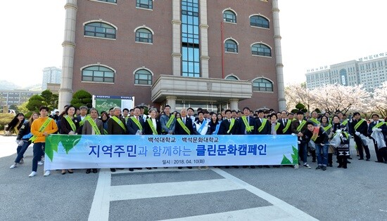 클린문화 캠페인은 대학 캠퍼스는 물론 백석대학교와 백석문화대학교 재학생들이 주로 이용하는 대학 앞 상가, 원룸촌을 청소하는 캠페인으로 양 대학의 오랜 전통이다. 특히 이번 클린문화 캠페인은 봄을 맞아 양 대학 교직원, 대학 인근 상가번영회가 함께해 눈길을 끌었다.