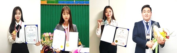 글로벌뷰티학과(학과장 임옥진) 유승하, 정다운, 김은빈, 김재근 씨가 이번 대회에 출전한 가운데 유승하, 정다운 씨가 1위 금메달을 획득했으며 김은빈 씨는 2위 은메달, 김재근 씨는 3위 동메달을 거머쥐었다.