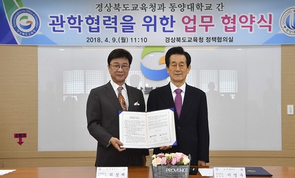 [대학저널 임지연 기자] 동양대학교(총장 최성해)와 경상북도교육청(교육감 이영우)는 지난 9일 경상북도교육청에서 지식·기술 교환과 산업인력 양성을 위한 업무협약(MOU)을 체결하고, 상호 협력하기로 했다.