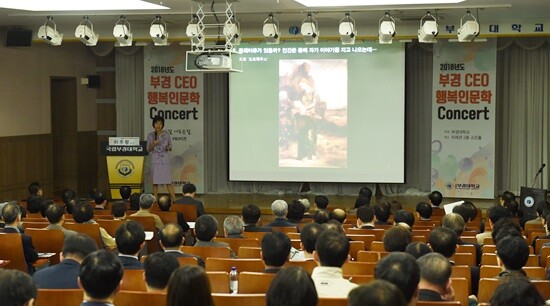 [대학저널 임승미 기자] 부경대학교(총장 김영섭)의 인문학 강연 ‘2018 부경CEO행복인문학콘서트’의 막이 올랐다. 이 강연은 지역CEO들의 행복한 삶을 돕기 위해 마련됐다.