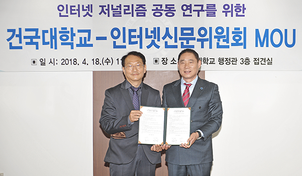 [대학저널 신효송 기자] 건국대학교(총장 민상기)가 18일 건국대 행정관에서 인터넷신문위원회(위원장 방재홍, 이하 인신위)와 인터넷 저널리즘 공동 연구를 위한 업무협약(MOU)을 체결했다.
