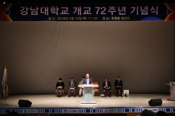 윤신일 강남대 총장은 “강남대가 숱한 역경과 어려움 속에서도 하나님을 믿고 의지하며 개교 72주년을 맞았다”며 “대내외적 전반에 걸친 새로운 질서와 패러다임의 변화 요구에 맞춰 강남 가족이 하나가 돼 도전의 역사를 써나가자”고 말했다.