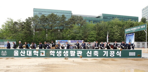 울산대는 26일 오연천 총장을 비롯한 교직원과 학생대표, 정용환 총동문회장, 시공사인 일광E&C 김국환 대표이사 등이 참석한 가운데 기숙사 기공식을 가졌다. 신축 기숙사는 215억 원이 투자돼 연면적 1만 2600㎡에 504명 수용 규모로 내년 8월 완공될 예정이다. 기숙사가 완공되면 기숙사 수용 인원이 2109명에서 2613명으로 늘어난다. 수용률도 올해 4월 1일 재학생(1만 2925명) 기준 20.2% 높아진다.
