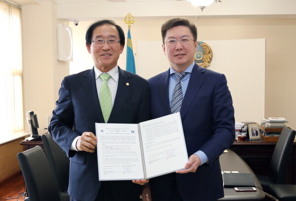경상대 이상경 총장은 지난 19일부터 23일까지 카자흐스탄 알마티시에 위치한 국립카자흐기술대를 방문해 이스칸데르 베이셈베토브 총장과 학술교류 및 학생교류 협정서에 서명했다.