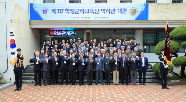 김회기 동문회장은 “역사관 조성을 위해 전폭적인 지원을 해준 학교 측과 동참해주신 동문들께 깊이 감사드린다”며 “전국 최우수 학군단의 전통을 계승해 후배 후보생들의 교육 지표로 삼길 바란다”고 전했다.