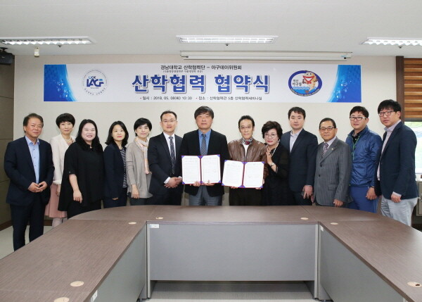 이날 협약식에는 경남대 산학협력단 강재관 단장, 이성일 부단장, 박은주 부단장, 식품영양생명학부 신동순 교수, 김현아 교수, 강옥주 교수, 김지상 교수, 박재희 교수, 김기대 교수와 아구데이위원회 김군수 상임위원장, 김삼연 공동위원장, 김상수 공동위원장, 서성근 집행위원장, 심재훈 사무국장 등이 참석했다.