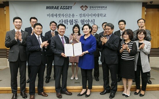 [대학저널 임승미 기자] 경희사이버대학교(총장 조인원)는 지난 14일 경희대 서울캠퍼스 본관 대회의실에서 '경희사이버대학교-미래에셋자산운용 산학협동 협약식'을 진행했다.