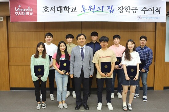 [대학저널 임승미 기자] 호서대학교(총장 이철성)는 21일 아산캠퍼스 강석규교육관 국제회의실에서‘2018학년도 후원의 집 장학금 전달식’을 개최, 재학생 10명에게 장학금 1000만 원을 전달하고 격려했다.
