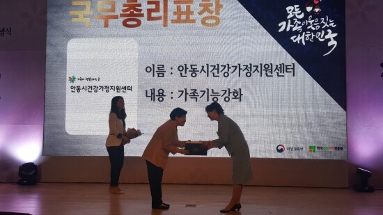 이번 표창은 안동시건강가정지원센터가 생애주기에 따른 다양한 영역의 프로그램을 통해 가족 건강 증진과 맞춤형 서비스를 제공하고 있다는 공로를 인정받아 이뤄진 것이다. 현재 안동시건강가정지원센터는 지역 내 가족 문제 예방과 가족 친화 문화조성을 위한 건강가정사업 및 아이돌봄지원사업을 운영하고 있다. 이외에도 지역적 특성과 수요자 중심 맞춤형 서비스를 위한 ‘찾아가는 가족 상담’도 운영, 연평균 500여 건의 서비스 제공으로 지역 내 가족문제 예방과 해결을 위해 기여하고 있다.