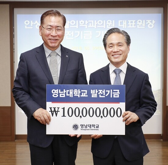 영남대는 안 원장이 기탁한 발전기금을 ‘안상호장학금’과 의대 재활의학과 일반기금으로 활용할 예정이다.