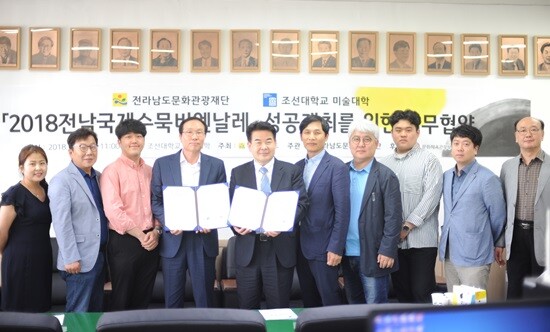 [대학저널 임승미 기자] 조선대학교(총장 강동완) 미술대학(학장 임채형)은 5일 조선대 미술대학장실에서 전남국제수묵비엔날레 사무국과 '2018전남국제수묵비엔날레' 성공개최를 위한 업무협약을 체결했다.
