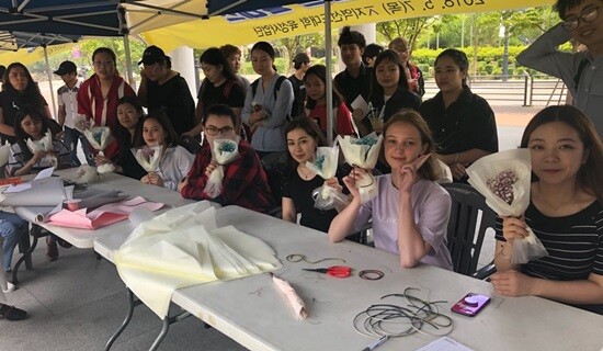 이날 행사는 케이티앤지 전북본부 상상유니브와 언어교육부의 협조로 정오부터 오후 2시까지 전북대 뉴실크로드센터 광장에서 플로리스트, 캘리그라피, 무알콜칵테일 클래스와 윷놀이, 투호게임 등 다양한 이벤트로 진행됐다.