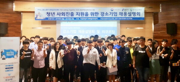 행사에는 수원고용센터와 우수기업 ㈜에이치티엠, 주식회사 마인즈랩이 참여했으며, 이들은 강소기업의 채용분야와 직무소개, 질의 응답시간을 갖고 현장면접까지 실시했다. 특히 수원고용센터 문채희 팀장은 고용노동부 청년내일채움공제 등 청년고용정책을 안내해 청년의 자산형성과 장기근속을 유도하고, 청년구직자에게 실질적인 도움을 주고자 했다.