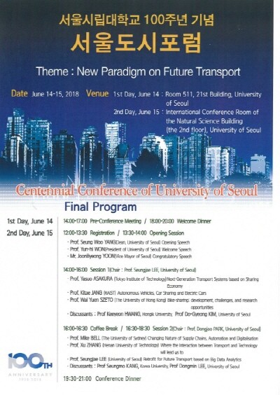포럼은 오전 10시 시민청에서 '미래사회와 Smart City' 주제 발표와 오후 2시 서울시립대 자연과학관 국제회의장에서 '미래사회의 New 도시교통 패러다임' 주제 발표가 진행된다.