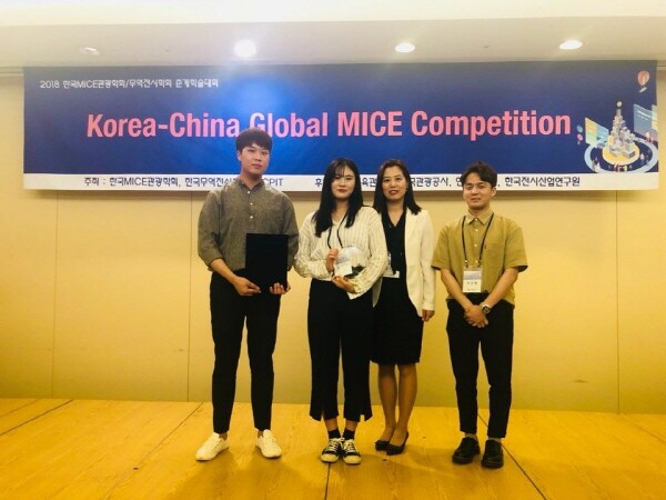 이번 공모전은 한국과 중국의 전시컨벤션, 호텔관광 관련학과 대학생·대학원생들이 참여해 2차례 심사가 진행됐다. 호텔경영학과 취업동아리 학생들(4학년 이기웅·두안형·전보라, 3학년 정지연)은 'Check-In'이라는 팀을 만들어 참가했다.
