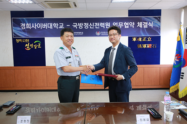 [대학저널 신효송 기자] 경희사이버대학교(총장 조인원)와 국방정신전력원이 지난 14일 대전광역시 유성구 자운대 합동군사대학 전승관에서 학·군협력 협약을 체결했다.