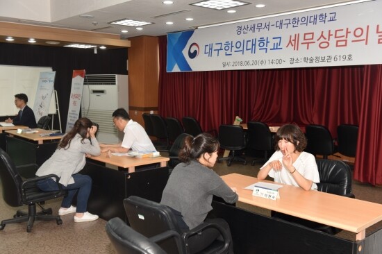 세무 상담의 날은 지난 20일 대구한의대 학술정보관 세미나실에서 경산세무서 세무전문가를 초청해 소득세, 양도세, 상속세 등 세무전반에 대해 세무전문가와 일대일 상담을 통해 궁금증을 해소하는 시간으로 이뤄졌다.
