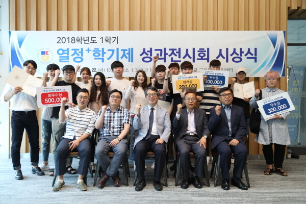 열정⁺학기제 프로그램에 참여한 학생들은 12개팀이다. 한 학기 동안 활동한 내용을 토대로 지난 7일부터 22일까지 건학기념관 1층 로비에서 2주 동안 성과전시회를 거쳤으며, 교육혁신추진센터 운영위원회 심사위원 평가점수로 입상팀을 선정했다. 각 입상팀들에게는 총장 상장과 함께 소정의 시상금이 지급됐다.