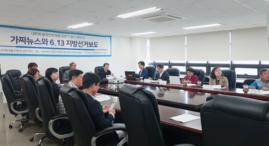 이날 세미나에서 발제자 우희창 충남민언련 공동대표는 이번 지방선거를 중심으로 가짜 뉴스의 현황과 사례, 영향력을 분석했고 언론사 공동 혹은 학계, 시민단체 등과 연계해 기사의 출처와 사실을 확인하고 팩트 체크를 하는 기구의 필요성을 주장했다.