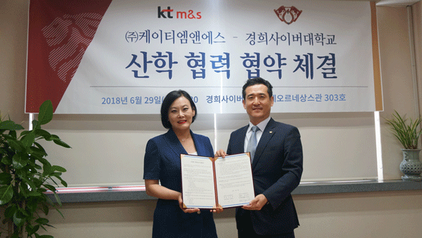 협약식에는 경희사이버대 김혜영 부총장, 대외협력실 신봉섭 실장, 대외협력실 신상기 팀장, (주)케이티엠앤엔스 조한상 경영기획총괄 전무, 최용남 경영기획총괄 인사총무팀장, 인사총무 윤희원, 문성욱 대리가 참석했다.