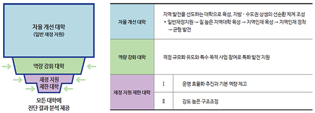 역량강화대학은 적정 규모화 유도 및 특수목적 사업 참여로 특화발전을 지원하며, 재정지원제한Ⅰ대학은 정원감축 권고, 운영 효율화 추진 및 기본 역량 제고, 재정지원제한Ⅱ대학은 강도 높은 구조조정을 추진하게 된다. 2단계 최종 평가결과는 8월말 발표될 예정이다.